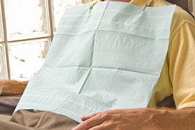 absorbent tissue + polyethylene filmQuality control:EN 13795 standardApplications:Dental bibs, Examine sheet